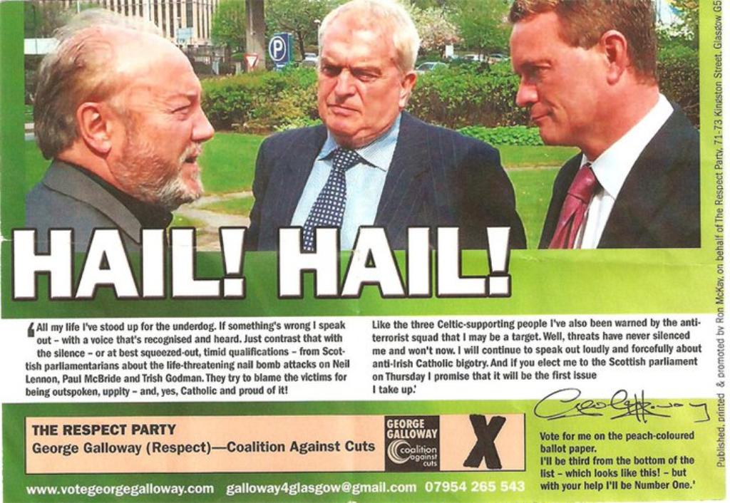 Many factors are worth considering in the disintegration of the old monolith: decline in religious participation; the changing ethnic complexion of our cities due to EU enlargement and asylum seeker dispersal; the development of human- and minority-rights narratives; progressive measures taken by the devolved Parliament. One hot potato is worth a mention: the Good Friday Agreement. The end of the Provo armed struggle has taken some of the edge off the hatred on both sides. Though partial and incomplete, there has been some space for reflection on the ravages of war. Moreover, the British media cooled its anti-Irish sentiment, switching attention to demonising Muslims at the dawn of the War on Terror. When Galloway raises the fear that Holyrood would become “another Stormont”, he is expressing an ossified view of the world as it was 40 years ago, as if power-sharing was never agreed and the Troubles were still raging.