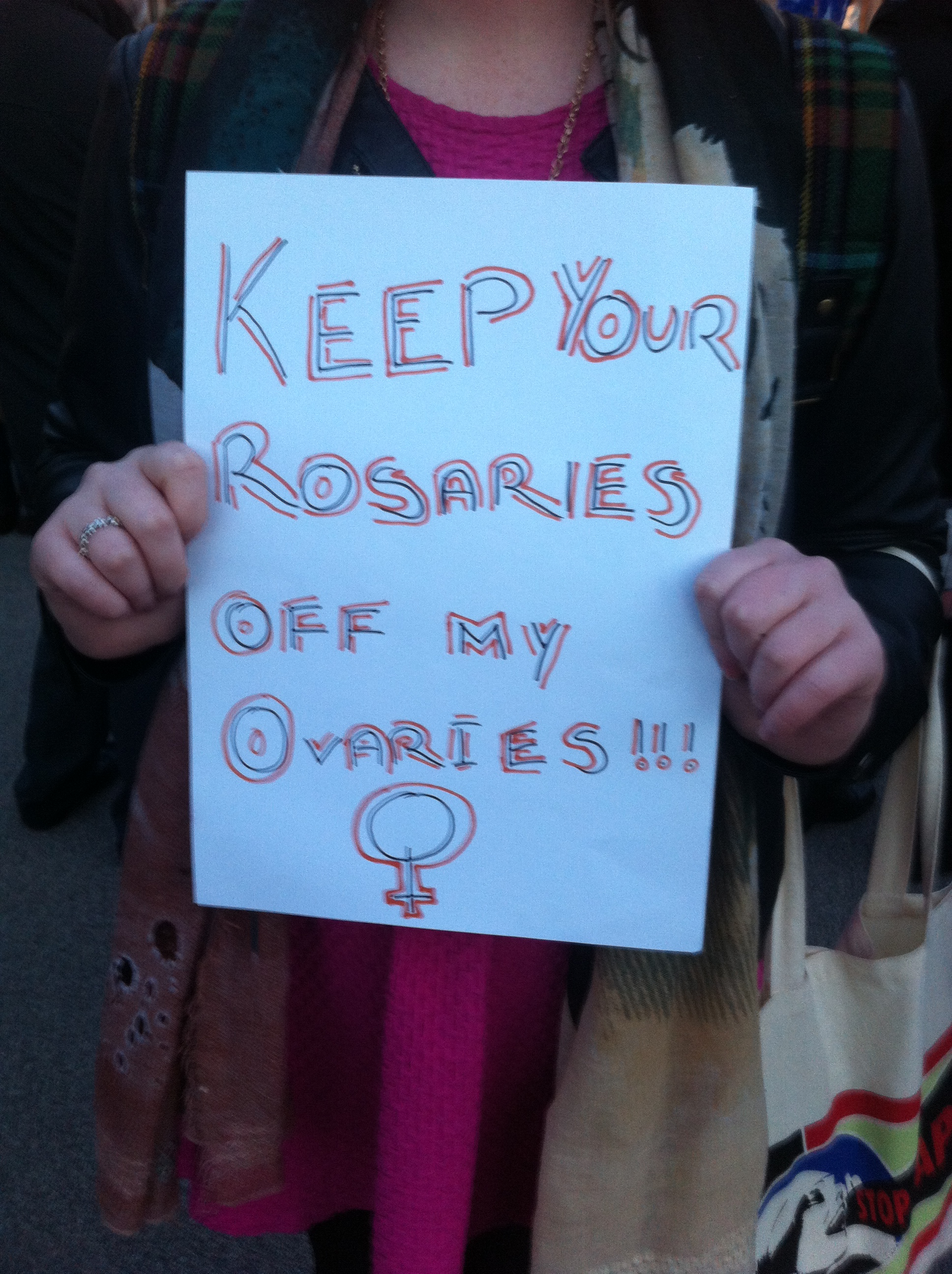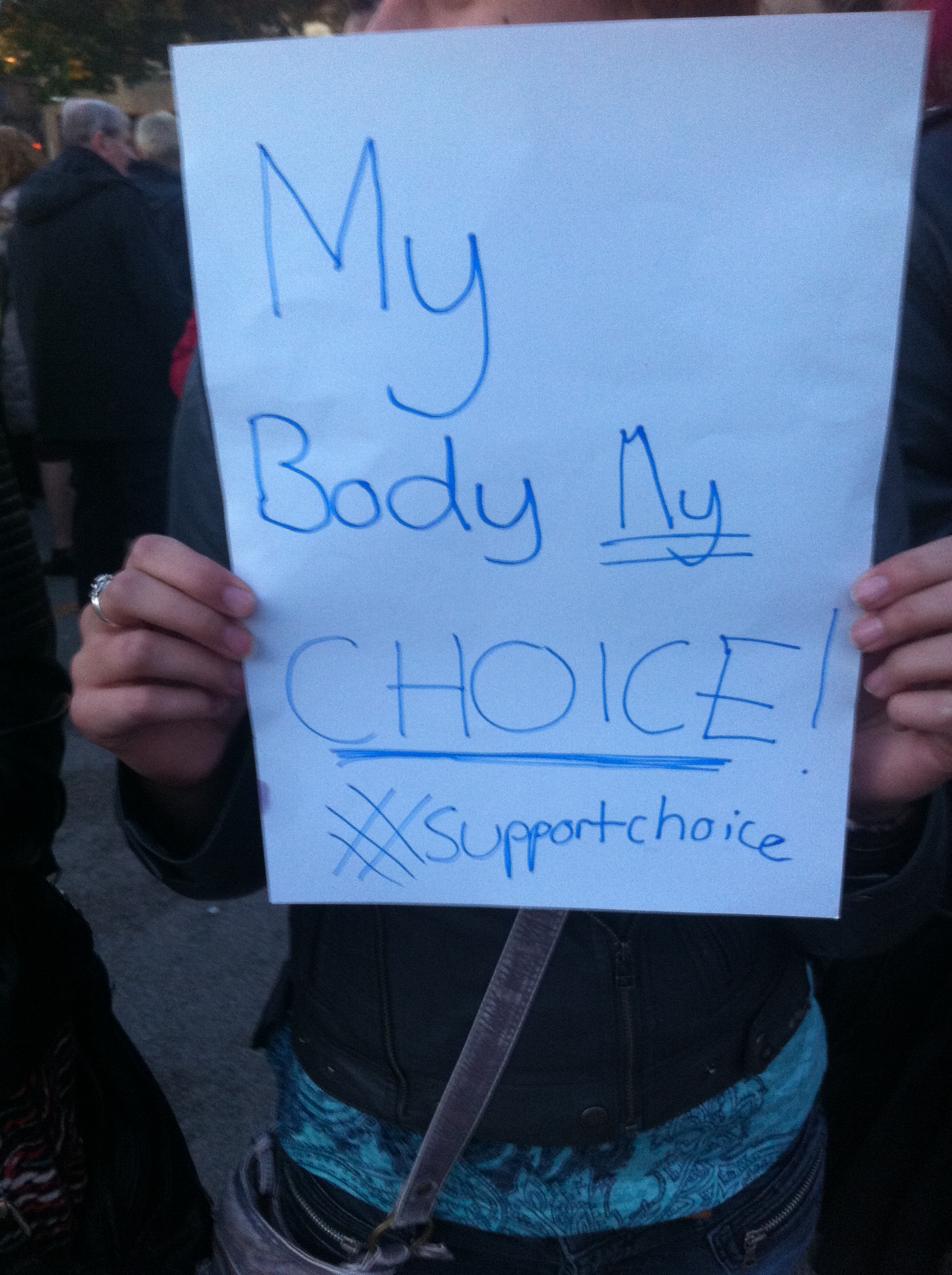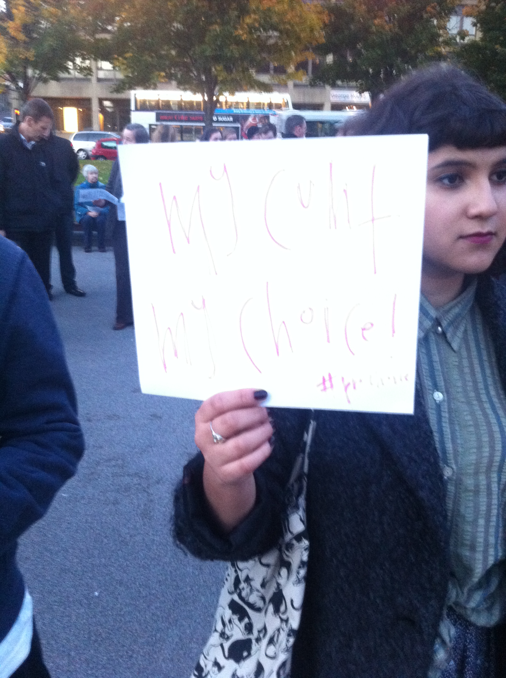 And they woulda gotten away with it as well, if it wasn’t for those pesky pro-choicers. We know how to get a crowd going too, and we’re much wittier than them. Choice chants of the night included “‘pro-life’ that’s a lie, you don’t care if women die”, “keep your rosaries off my ovaries” and an ingenious modification of Call Me Maybe, worded (I think) “I just met you, and you’re all right-wing. it’s my body, so hands off crazy” (or something).