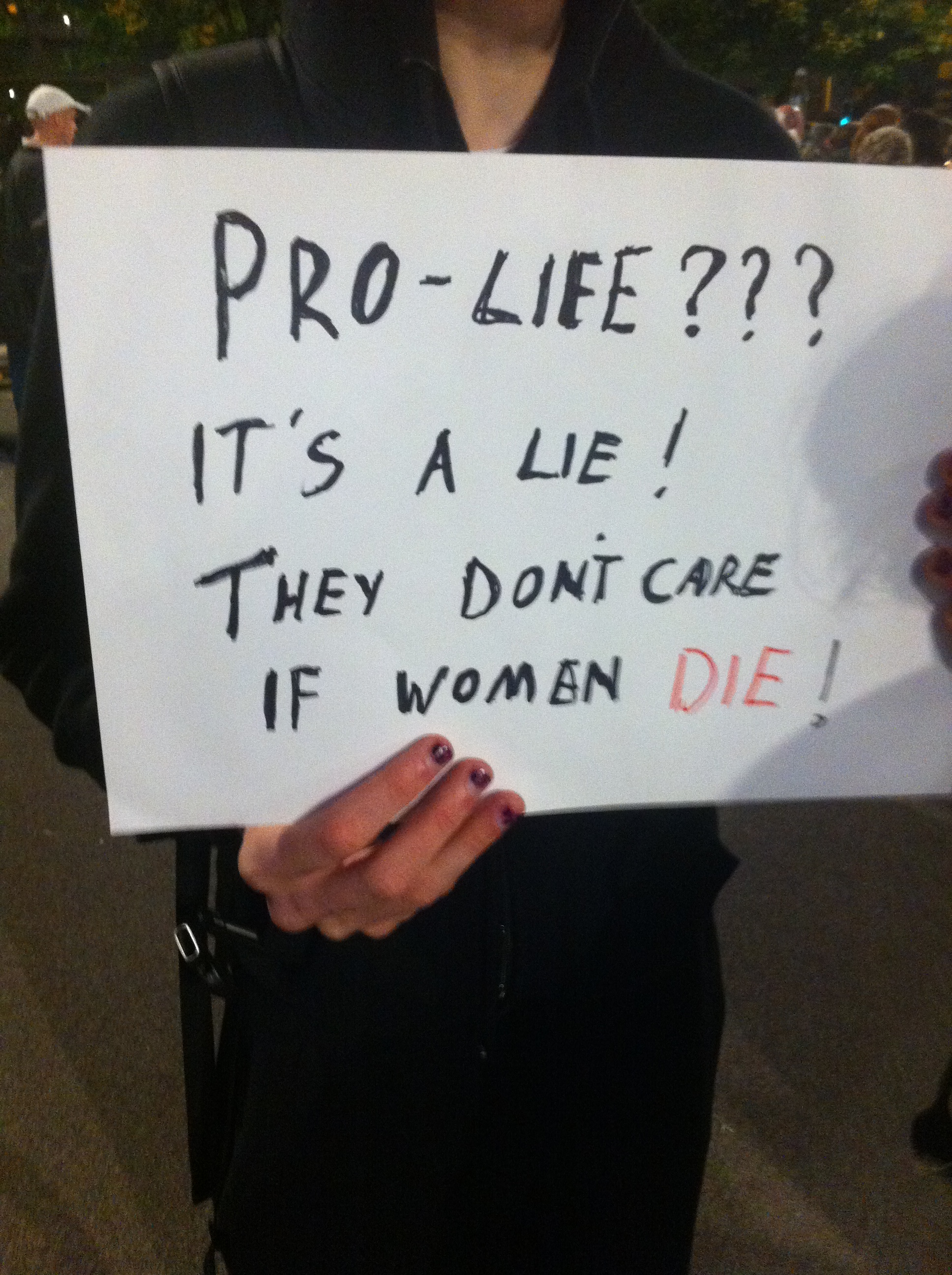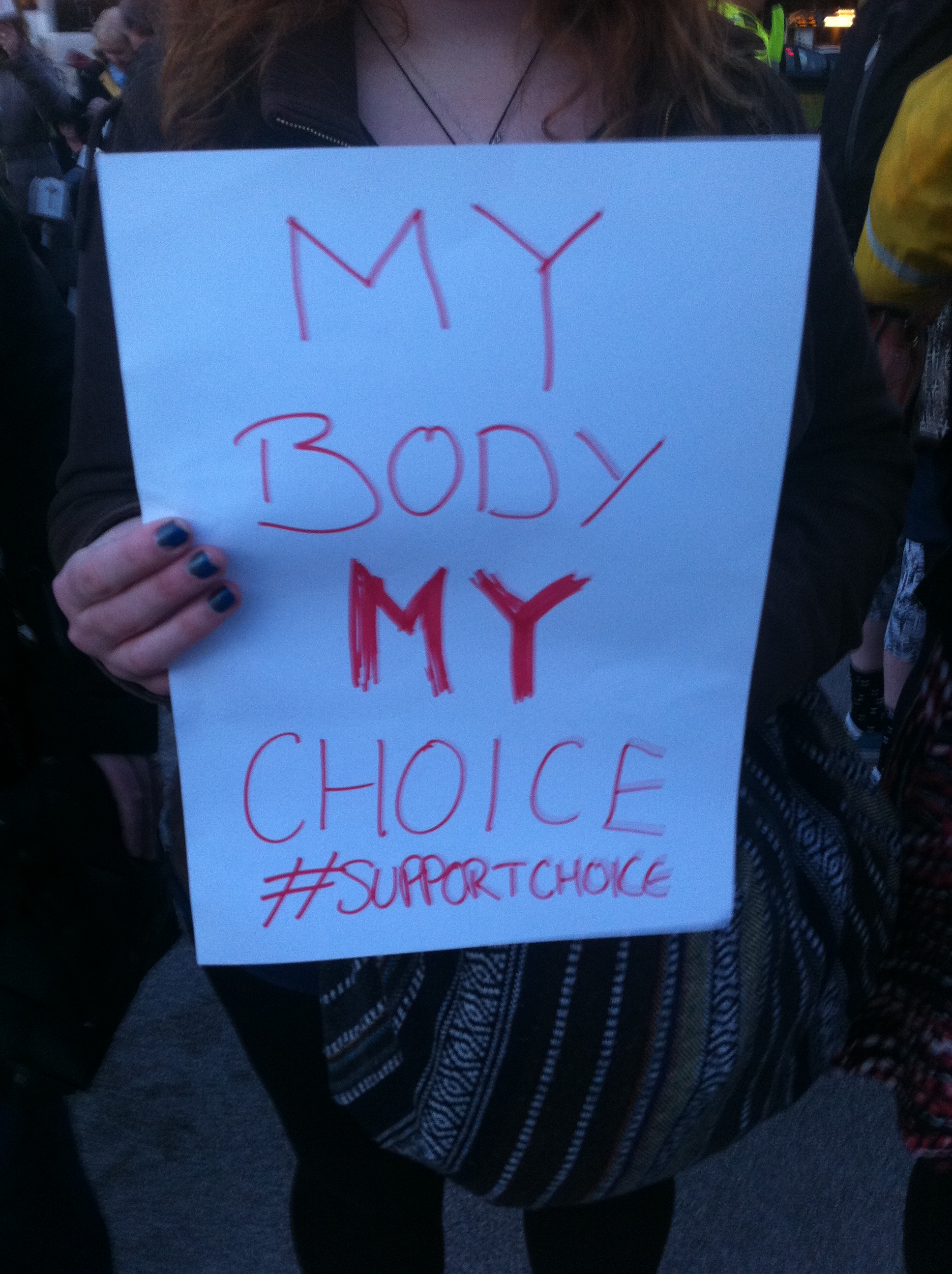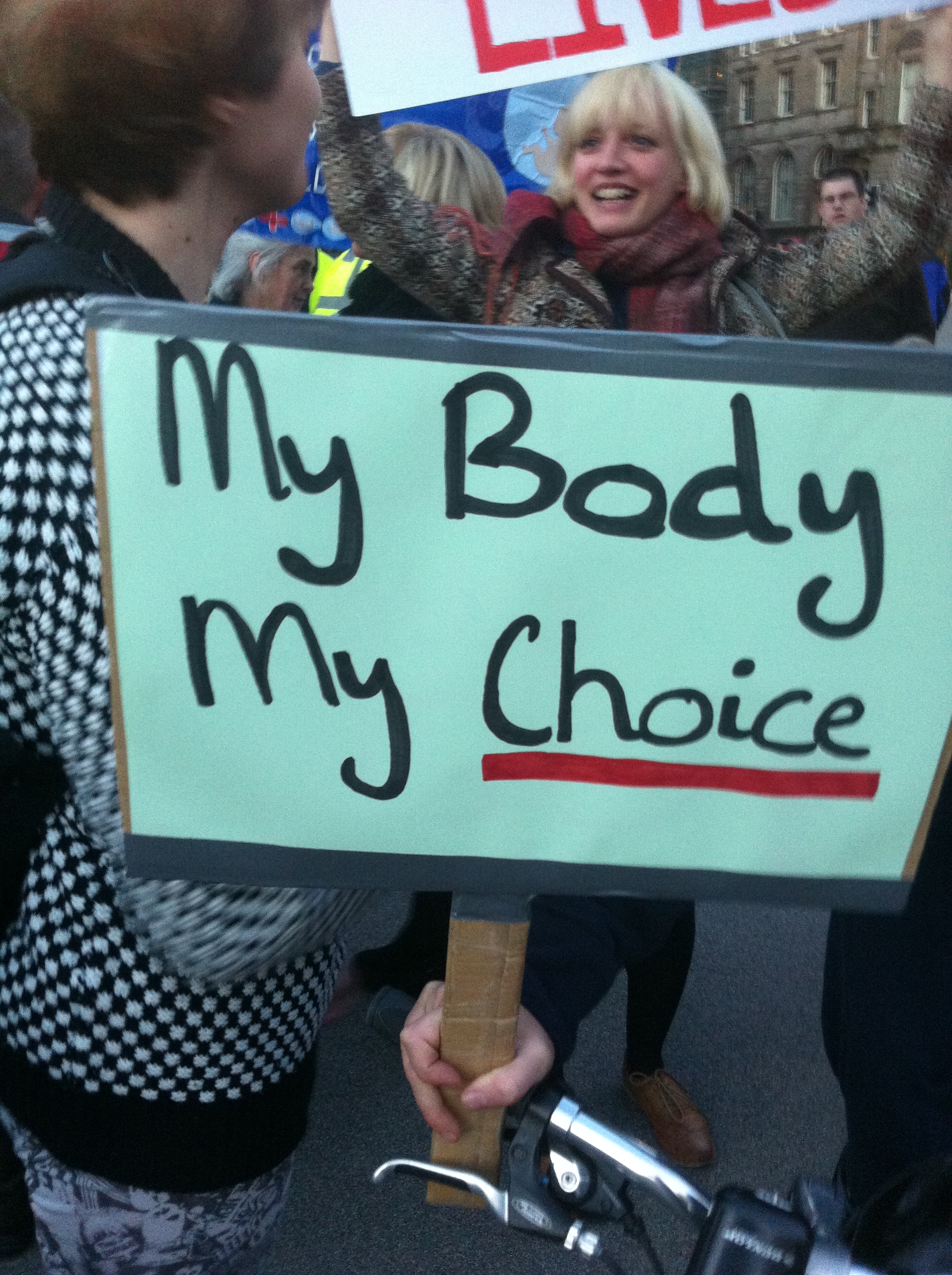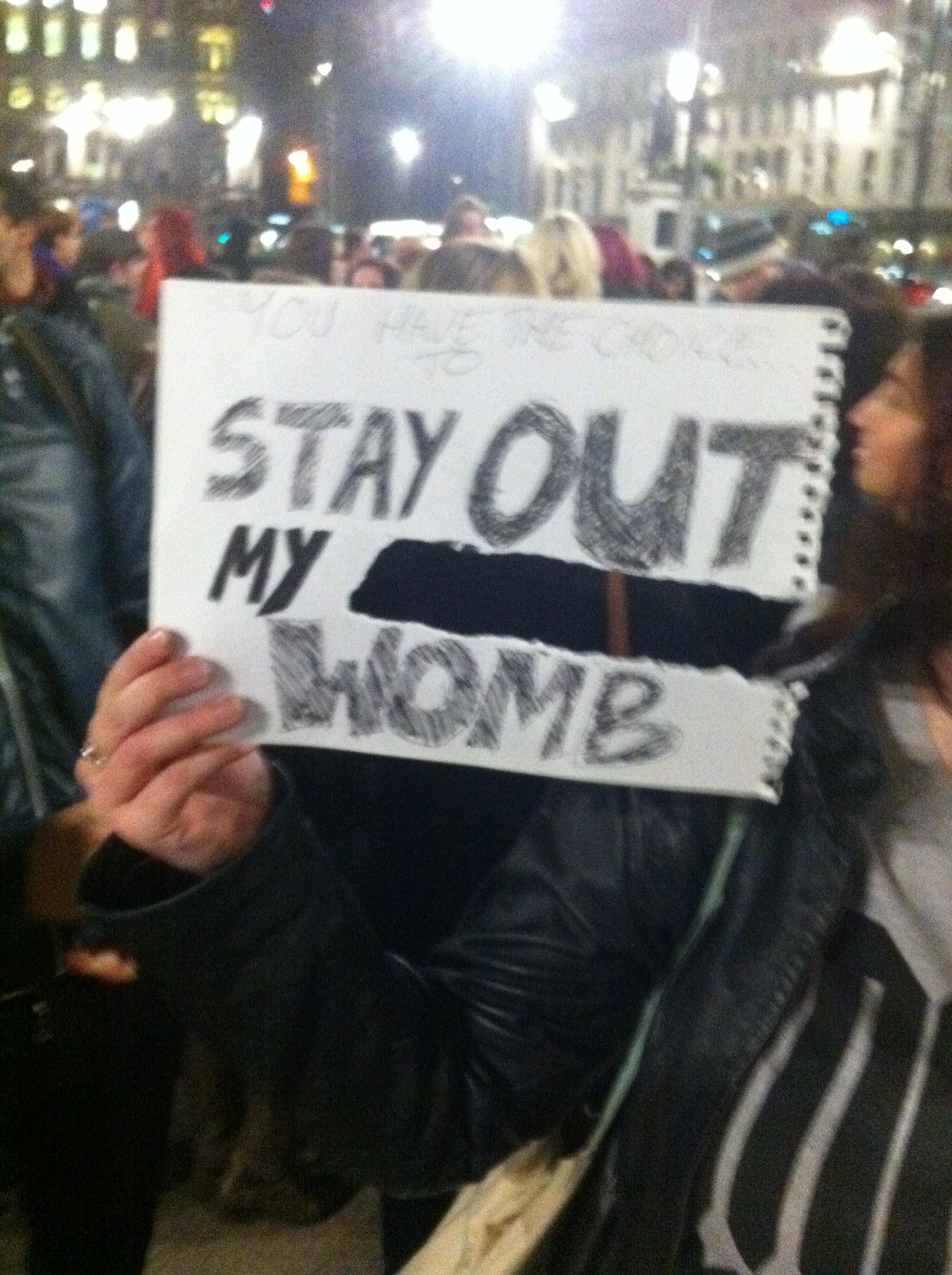 And they woulda gotten away with it as well, if it wasn’t for those pesky pro-choicers. We know how to get a crowd going too, and we’re much wittier than them. Choice chants of the night included “‘pro-life’ that’s a lie, you don’t care if women die”, “keep your rosaries off my ovaries” and an ingenious modification of Call Me Maybe, worded (I think) “I just met you, and you’re all right-wing. it’s my body, so hands off crazy” (or something).