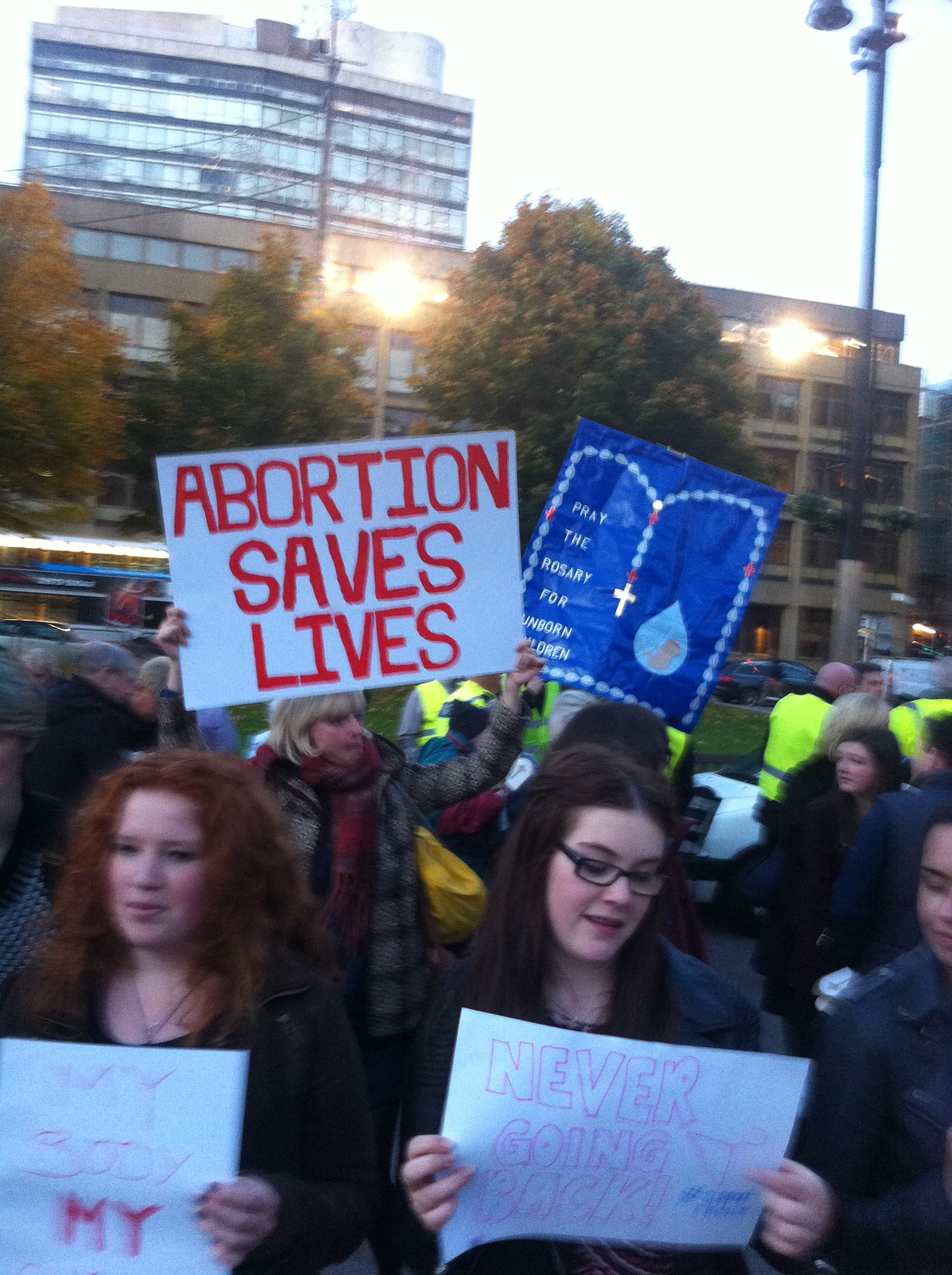 OK so not everyone in Glasgow supports choice, apparently. Earlier today there was a “pro-life” vigil in George Square, followed by a torchlit procession to St Andrew’s Cathedral. Say what you will about their odious [official] views on women’s rights; the hymns, candles and statues of the Virgin Mary prove those Catholics sure know how to do atmosphere.