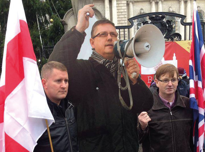 Dowson remains a fairly two dimensional figure IRL too though, a cartoon baddie who at one time virtually owned the BNP. That was until he realised that instead of spending all his time and money propping up a desperate bunch of bigots and losers, he could set up his very own party full of bigots and losers. Dowson set up his Britain First cult in 2010, amid one of the BNP’s many tedious bouts of infighting that has left the party in the state of total disarray it’s in today. Self-styled leader of the BF’s paramilitary wing and fantasist in chief, Paul Golding, is another former senior BNP figure. Britain First was set up as an explicitly Christian far-right party, with Golding conveniently discovering his faith just before he took up his post. With links to right-wing paramilitaries in the north of Ireland, Dowson was a key figure in the Belfast flegs protest in 2012-13, as hardline loyalists waged war on the city authorities’ decision to stop flying the Union Jack every day of the year. Dowson is also familar to pro-choice campaigners as an anti-abortion extremist, who has been pivotal in the anti-choice movement in Ireland.