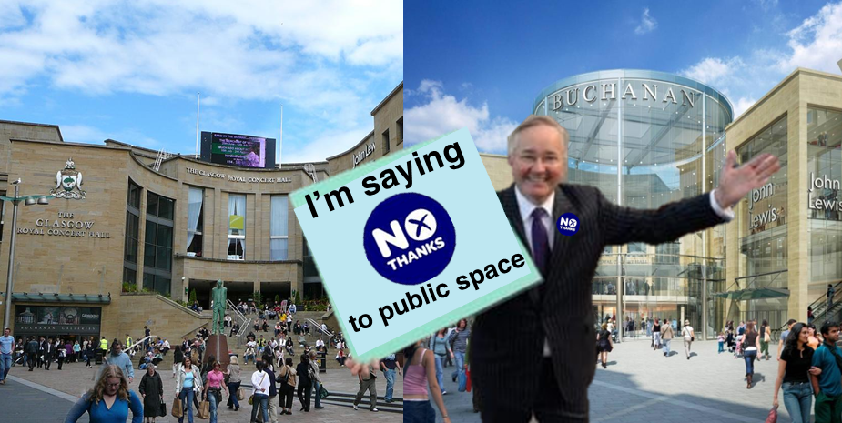 Okay Gordon, who the fuck are we competing with in terms of shopping centres and cinemas? But more to the point, while the Scottish Government, for all their failings, are putting across serious plans to re-industrialise Scotland through renewables and manufacturing (“enthusiastically” welcomed by the STUC), Matheson’s entire strategy hinges on securing a few thousand transient service sector jobs. Unintentionally, he’s managed to sum up the entire essence of the debate right now. We can have a UK which prizes shopping centres and precarious employment above all else – not least important civic spaces in our city centre – or a Scotland that offers a us glimpse of breaking out of the neo-liberal nightmare, with a focus on reclaiming our cities, parks and land, and creating decent jobs.
