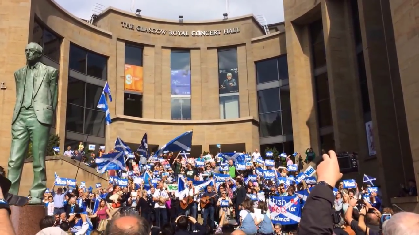 One of the busiest parts of the city centre, the steps below the Royal Concert Hall at the top of Buchanan Street are not just iconic, but one of Glasgow’s most well used civic spaces. Saturday just gone was no different, with the location being utilised by Yes campaigners, people eating their lunch or just looking for a sit-down, a mass choral flashmob, and a protest by the city’s Iraqi community – all of which was witnessed in the space of about 30 minutes.