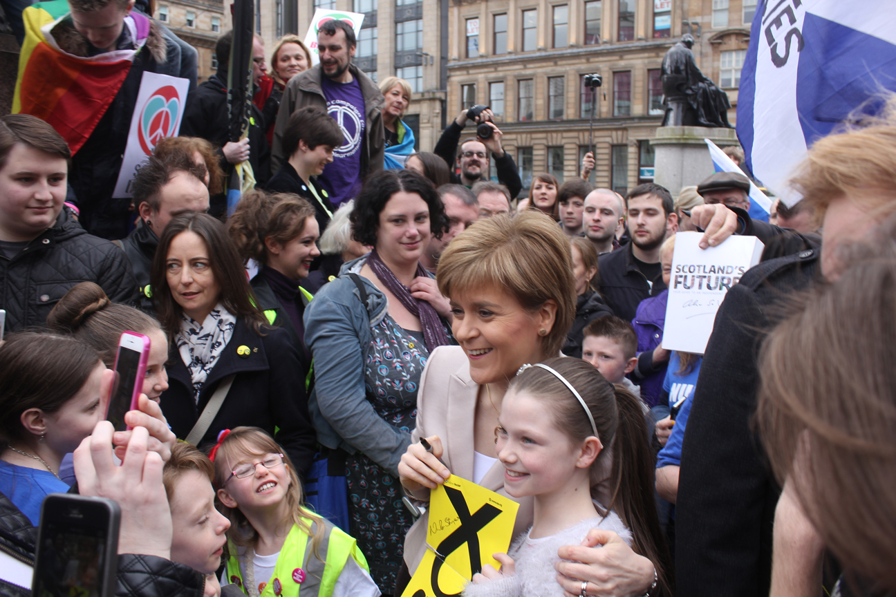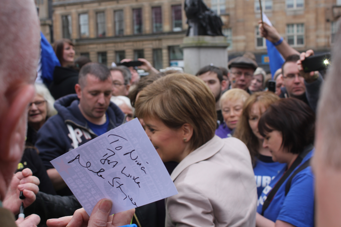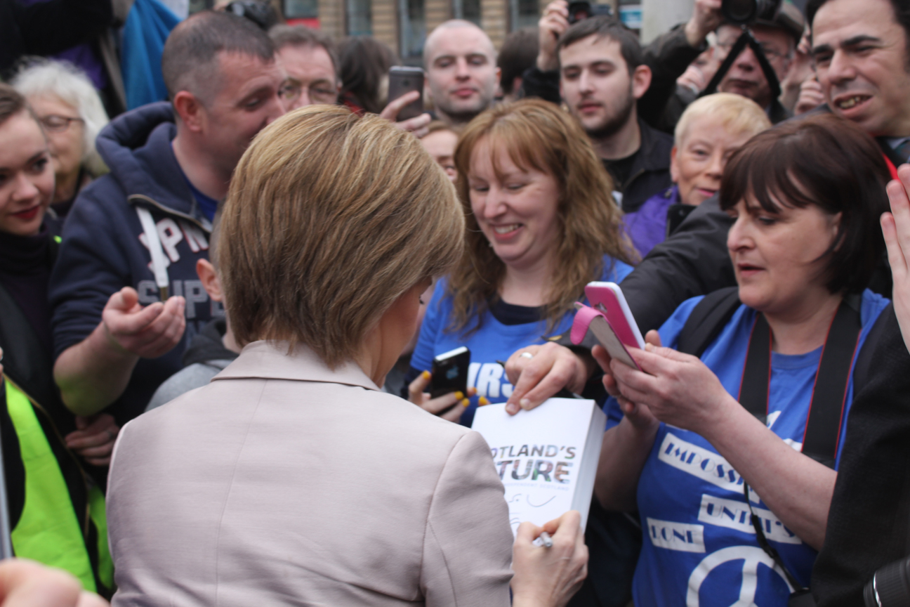 Thousands marched in Glasgow today to Scrap Trident and fight for a nuclear free future. We slept in – so here are some pictures of the rally in George Square and the ensuing Sturgeon selfie scrum.