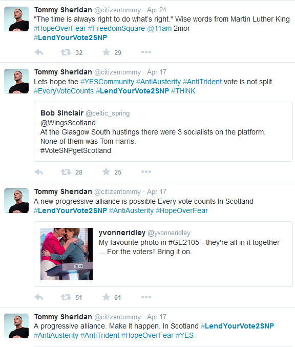 I’d suggest the Nats are doing fine and dandy without the assistance of Scotland’s most recognisable liar. Despite what today attempted to project, the referendum is over. The sooner we stop seeing everything as a postscript to one referendum and a prelude to another the better. Yes is the answer to a question no-one is asking right now and being encouraged to shout it at everything will only allow those in power to continue to do bugger all to make Scotland that fairer place they all prattle on about. But of course, that’s of no interest to Mr. Sheridan.