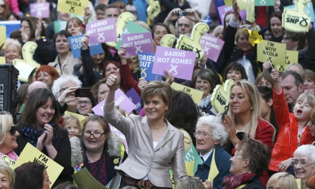 It’s hard to argue with the inclusion of people like anti-poverty campaigner Denis Curran or Roza Salih, one of the Glasgow Girls who spoke of the need to build solidarity with the Kurds fighting ISIS. But as per, everyone and everything was punctuated with appearances from the man himself. Let’s recreate that famous photo of the two young women holding their saltire in the midst of a mob of unionists on September 19th, only this time…with Tommy in it! Let’s have a speech from CND, so Tommy can lead a big chant afterwards. Let’s invite loads of bands to play, so Tommy can engage in never-ending banter about tied up cables and how people will be coming round with SEALED buckets [emphasis his] to collect money for whatever it is, presumably more flags and more amplification for those least in need.