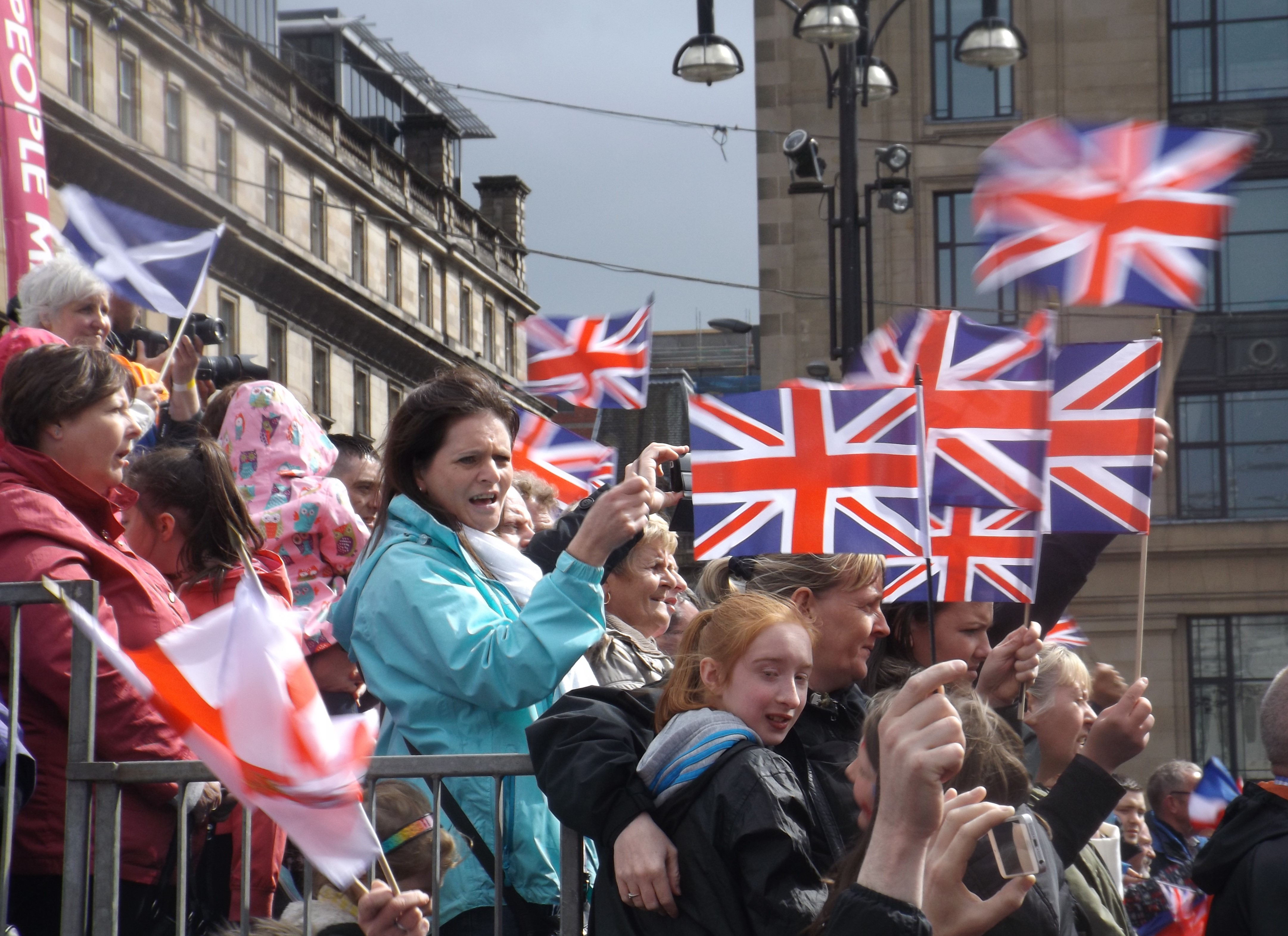 The Glasgow weather was predictably welcoming, varying for dreich to smirry to pissing it down and compared with the huge numbers who’ve packed out the square to oppose nuclear weapons or listen to other shouty men recently, there weren’t nearly as many folk as we’d expected. The threat of gale force winds may have slightly curtailed some of the festivities, our hopes of perhaps watching dogs in sashes walking on tightropes or playing on the Bouncy Bouncy Castle forever dashed.