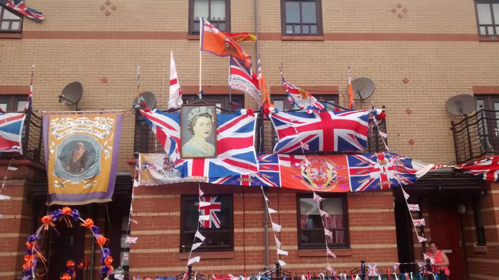 Interestingly enough, there wasn’t any paramilitary flags up in Bridgeton (where this house is) this year, which makes a change – bizarrely, just lots of the Royal Standard of Scotland instead.