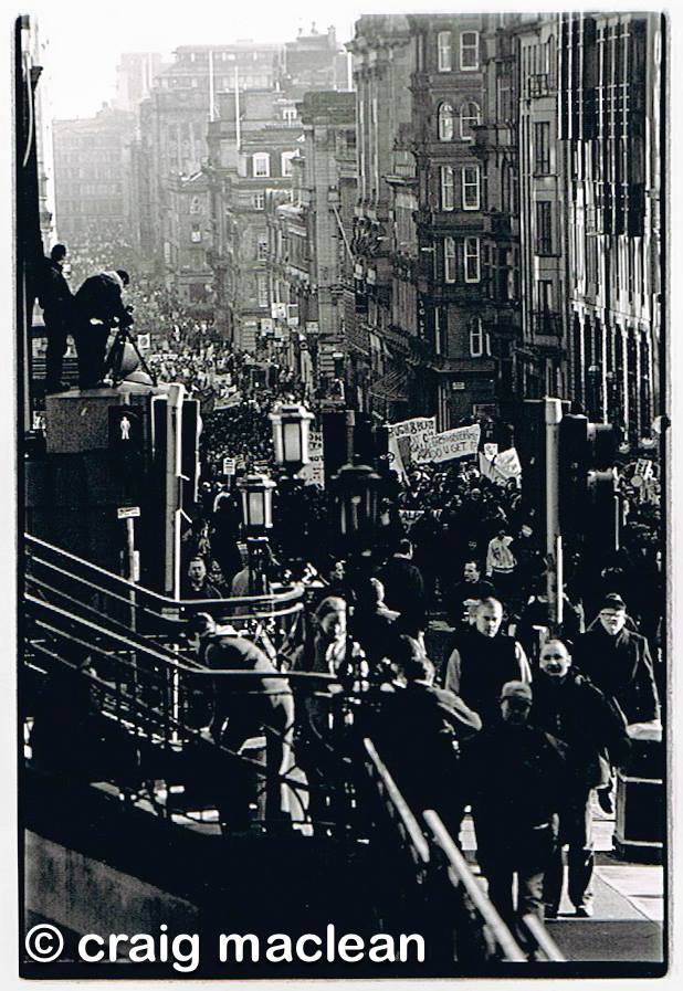 The demonstrations that day have since become a by-word for the “failure” of political protests. Blair would go out of his way to avoid the march in Glasgow, shifting his speech to 10:30am, well ahead of the protestors’ arrival outside the SECC.