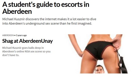 Kusznir has media credentials he probably wishes he didn’t, longing for Ashton Lane like a true East Ender, an article on “how to bullshit” (admittedly a vital skill for GCC) and of course, this piece in which he complains of “a distinct lack of any real looking student boudoir beauties”, but confesses that “the variety of tits and teeth shots lures you into gawking” before ending with an encouragement to readers to use Craiglist to pick people up “if you are so desperate a STD infected killer appeals”, a reference to the murder of Troy LaFerrara.