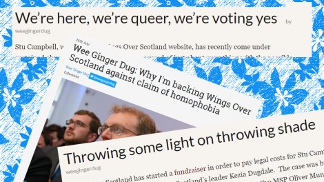 Rather than putting his money where his amply endowed gob is and paying all the costs himself, Stuart Campbell’s crowdfunding and framing it as an attempt to fight “lies and smears from unionist politicians”  Independence supporters are being encouraged to part with their cash, despite the clear consequences this case could have for LGBT’s people ability to speak freely about the challenges we face in modern Scotland.