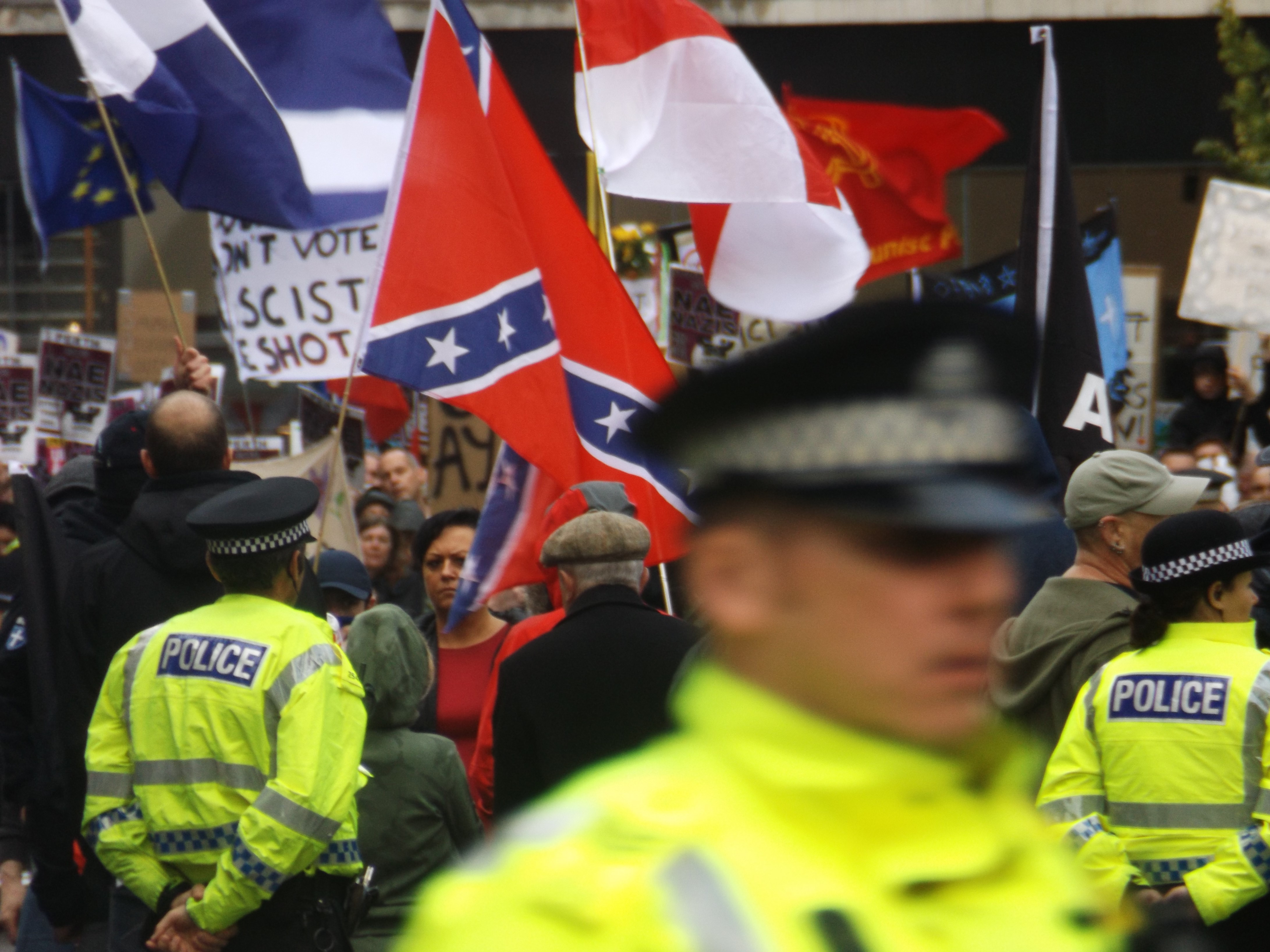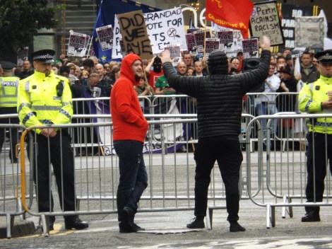 The policing on Sunday was totally over the top, going to extreme lengths to facilitate the SDL’s desire for a demo in the town centre. At least their appearance, and eventual escorting away, gave the day a defined end point, coinciding, as it did, with a torrential downpour.