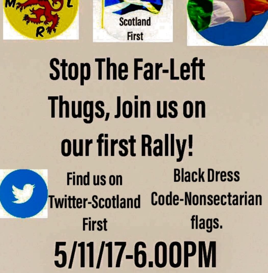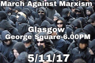 However, clearly eager to get moving with their new organisation(s), and with no SDL demos on the horizon at present, the groups have announced a Glasgow convergence for Sunday 5 November, dubbed the “March against Marxism”. Supporters are told to dress in black and bring “non-sectarian flags”, whatever that means.