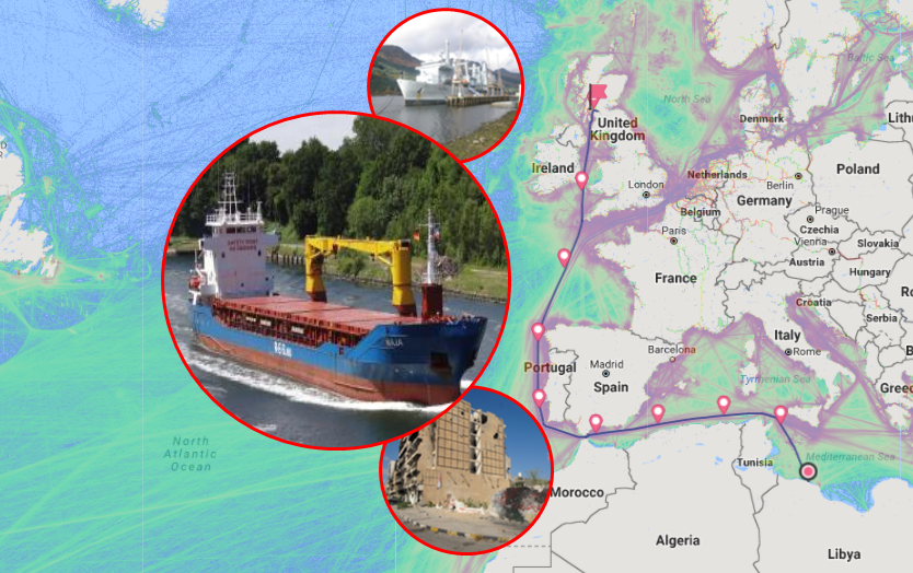 So this is what we know: a Caribbean-flagged merchant ship (which, it turns out, has an IMO Class 1 license, required to carry explosives) left a Libyan port, spent several days in Scottish waters, and then docked at an MOD munitions depot for about six hours this morning. It’s now on its way to Iceland.