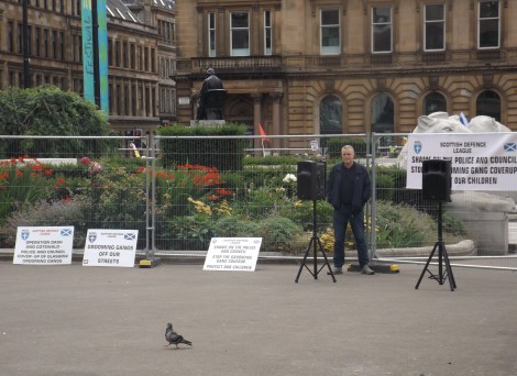 Today’s Glasgow demo by the Scottish Defence League felt like it was going to be a make or break moment for the group, more than two years after their last demonstration in the city. While the SDL have consistently struggled to ever break into three figures at their demonstrations, the current climate – which has see the “Free Tommy” movement act to unite disparate elements of the far-right in England, and increasingly internationally – appears favourable to them.