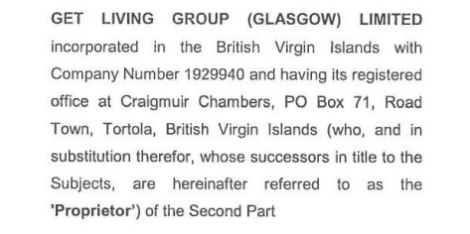 Get Living Group (Glasgow) Limited are – despite their name – not very Glaswegian. You’ll struggle to find them on the Companies House site for that matter too. Rather, they are registered in Jersey in the Channel Islands, with their parent company then owned in an even more notorious tax haven: the British Virgin Islands, at an address that features 8 times in the Panama Papers. Their Jersey and BVI registrations make it impossible to probe their accounts or find out who their ultimate owner is.