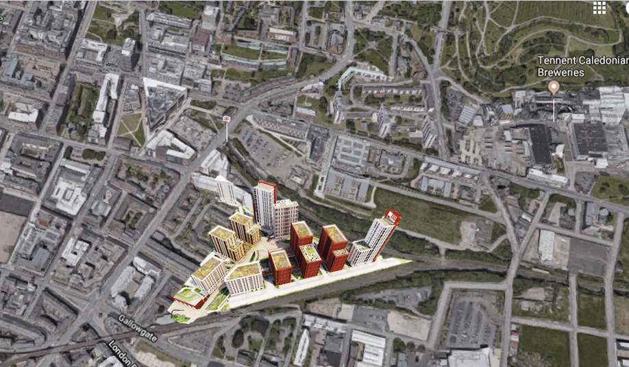But any future proposals to develop Crossrail have today been dealt a fatal blow after Glasgow City Council approved a major mixed-use development on the “High street curve” site that would be vital for creating the link. The £200m high rise plans – from Get Living Group (Glasgow) Limited – are for 727 build-to-rent homes, 99 student studios and more than 3,000 square metres of retail, leisure and business space on a former goods yard site.