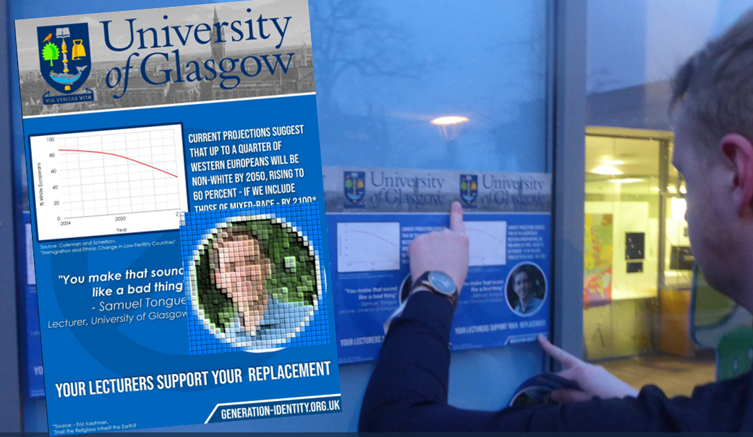 In Glasgow, however, their resources are considerably more limited, and their posters – complete with academic headshot, line graph and massive Glasgow Uni logo – looks like something dreampt up by corporate comms, rather than underground fascist propoganda. After their presumably short-lived stunt on Monday, they paraded the results on Twitter the following day, keen to alert their followers to the “deeply immoral and racist position” held by a “public intellectual” at Glasgow University.