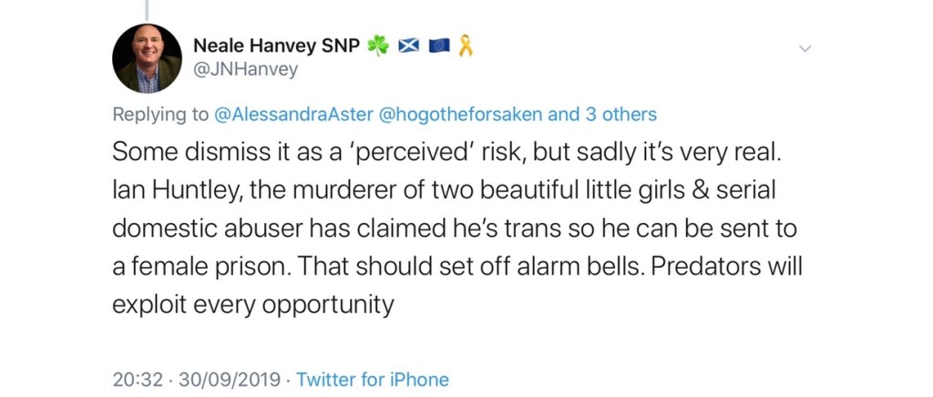 Hanvey is a classic example of what happens when you ignore all the warning signs that someone is an obvious baddie.  Prior to his election, Hanvey was engaged in batshit conspiracy theories about paedophiles infiltrating the LBGT movement, shared the blatant lie that murderer Ian Huntley was now a trans woman and associated himself with the hate group, the LGB Alliance.